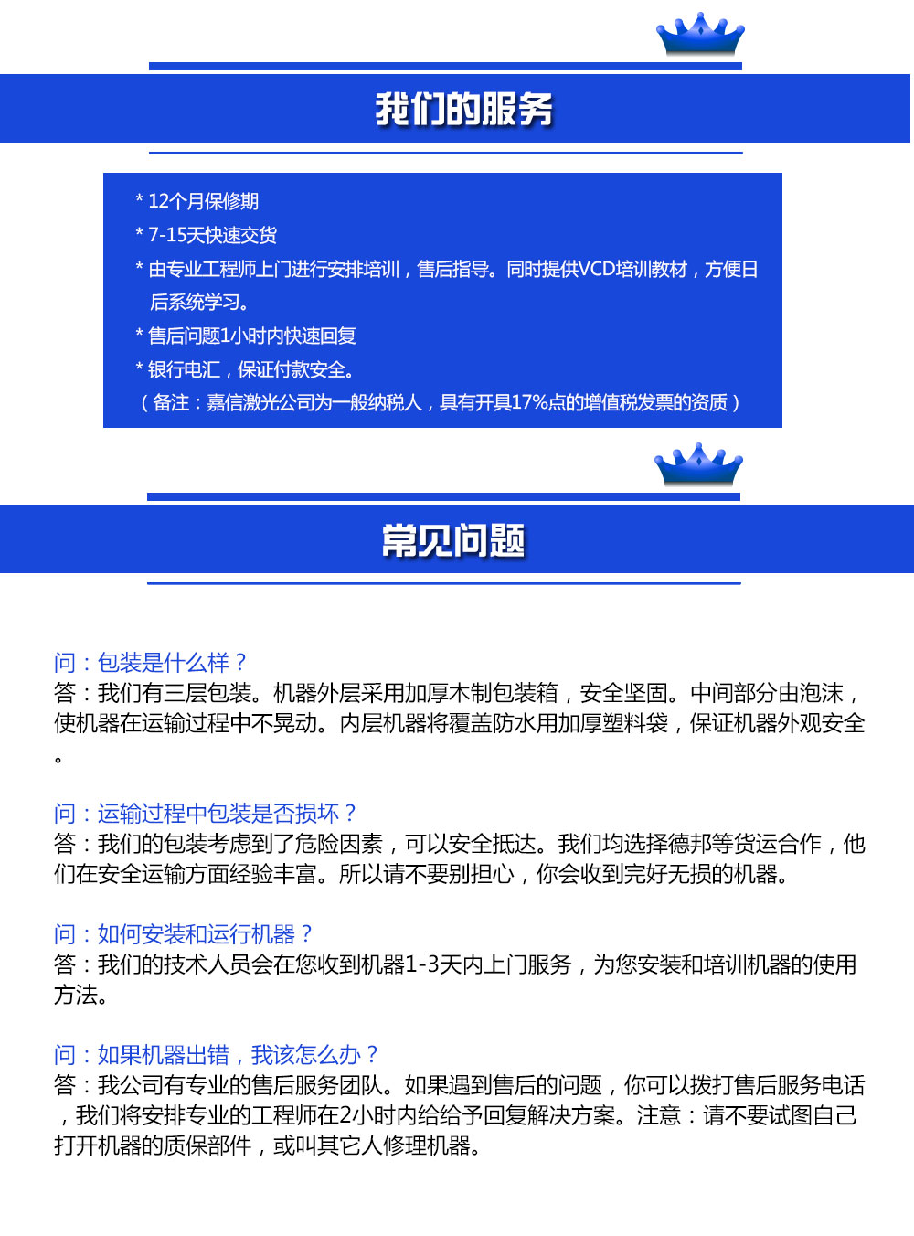 9. 嘉信激光可按照客戶的要求個性定制機型;