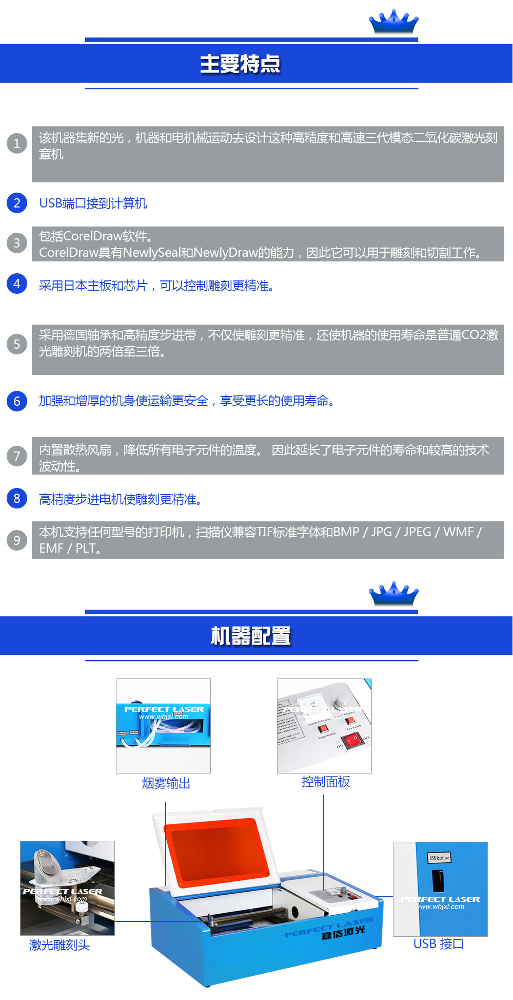 1.便捷接口:迷你激光刻章機采用USB接口,可以連接筆記本或者PC主機直接進行作業,支持多種文件格式,包括BMP / JPG / JPEG / WMF / EMF / PLT;