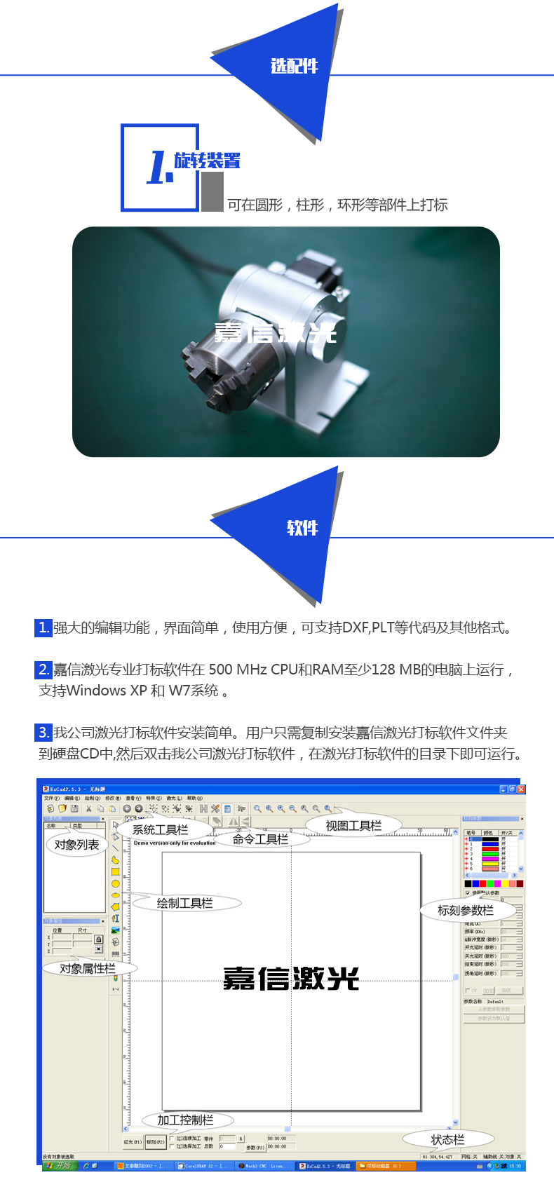 2. 可選配多種功率激光光源:無(wú)論您屬于什么行業(yè),無(wú)論您使用什么材料,該款臺(tái)式光纖激光打標(biāo)機(jī)都可以為您個(gè)性定制適合的打標(biāo)機(jī);