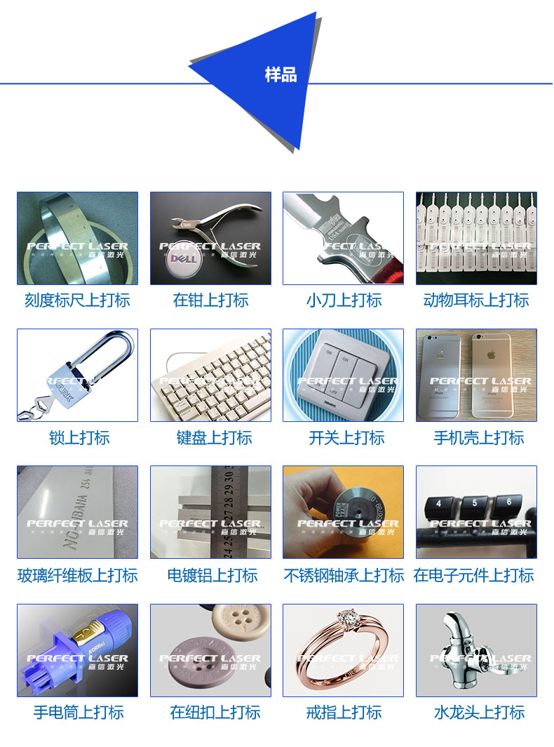此款小型迷你桌面式光纖激光打標機適用于所有金屬或硬質塑料打標,如: 化裝品、電子煙、飲料罐、金銀手飾、電子元器件,漆面木材,銅版紙、等等。可打標各種語言文字,日期,logo,圖片,二維碼,條形碼等。