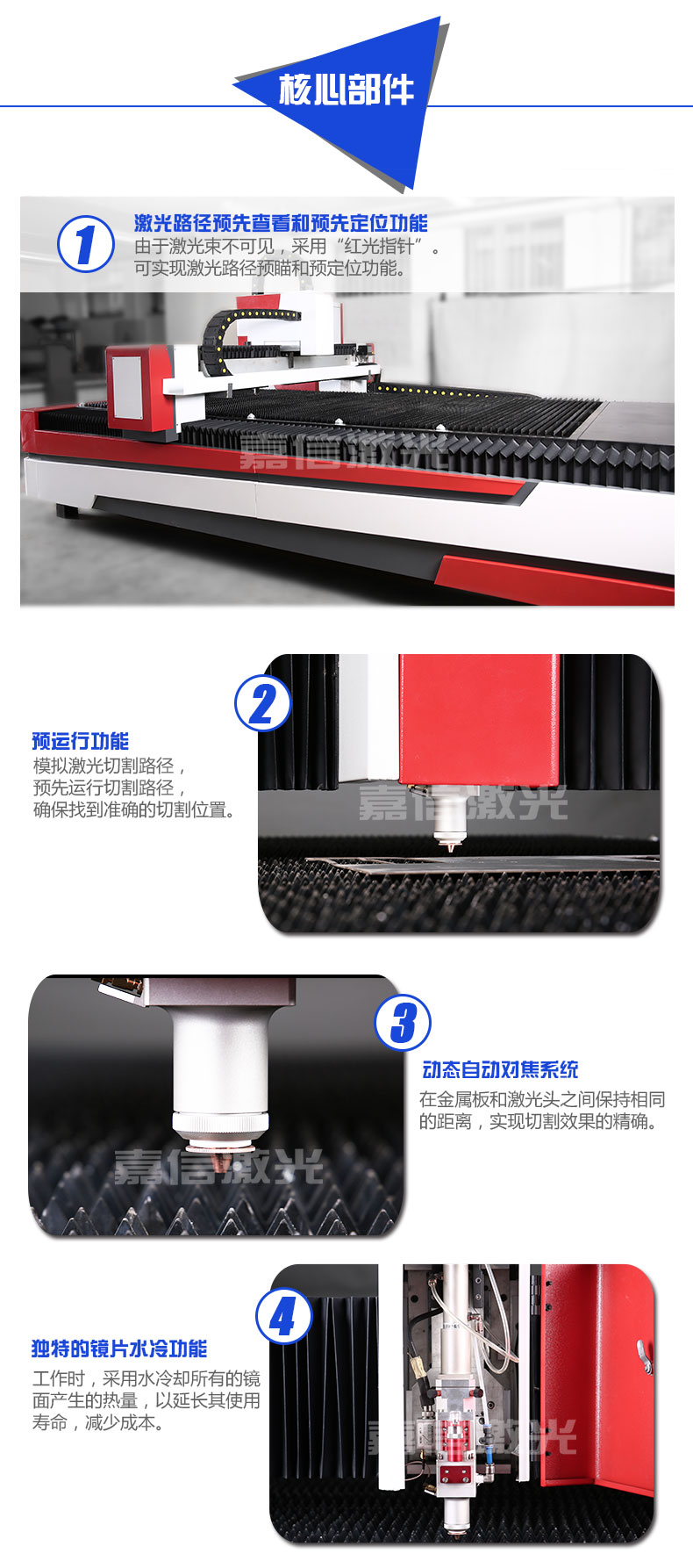 1000w光纖切割機是嘉信激光旗下主打產品,包含整體龍門式結構,高強度德國激光器,日本進口伺服電機,精密直線導軌和滾珠絲杠傳動系統,具有剛性高、穩定性強、加工質量高等特點。