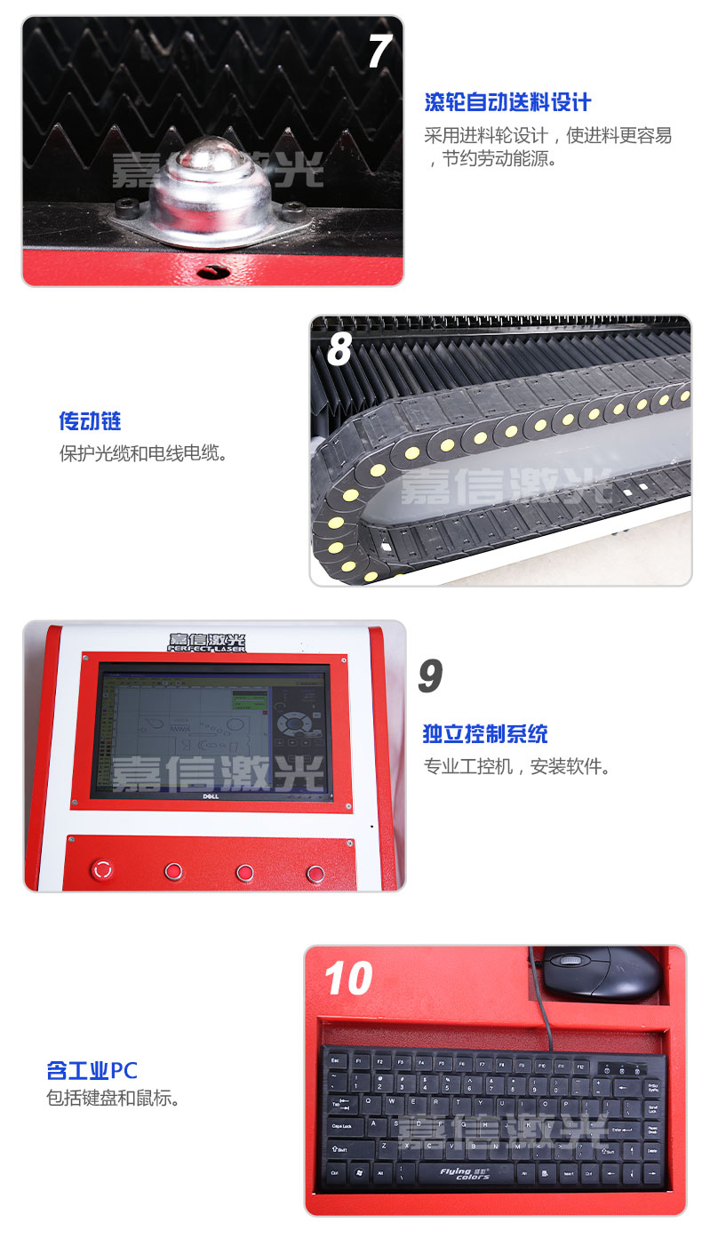 3.自動上料設計:自動上料節約上下料時間,2000w光纖切割機在進行切割工作操作時可以自動上下料,提供整個工作效率30%以上;