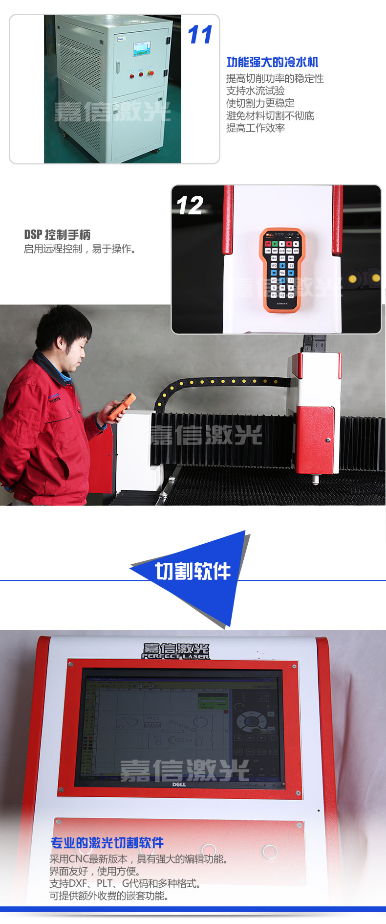 2000w光纖切割機采用德國IPG激光器,美國進口專用光纖切割頭,日本松下伺服電機,優質的光束質量,更為流暢的切割線條,帶來光纖切割機良好的切割效果。