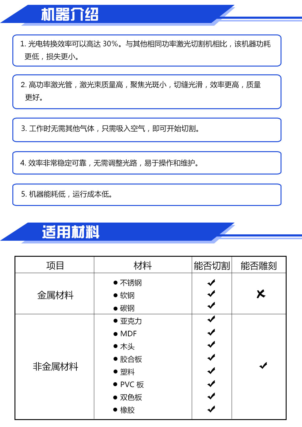 1.適合材料:亞克力、塑料板、木板、不銹鋼、碳鋼、鋼板、鐵板、等多種金屬和非金屬材料;