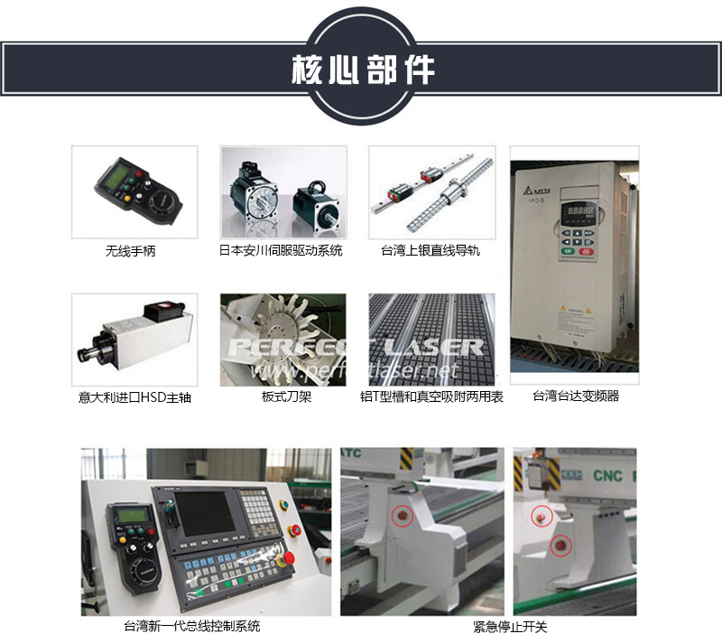 5.臺(tái)灣直線(xiàn)方形導(dǎo)軌:TBI精密滾珠絲杠傳動(dòng)系統(tǒng),日本伺服電機(jī),雙排四列滾珠滑塊,承重力大,運(yùn)行平穩(wěn),壽命長(zhǎng),下刀精度高。