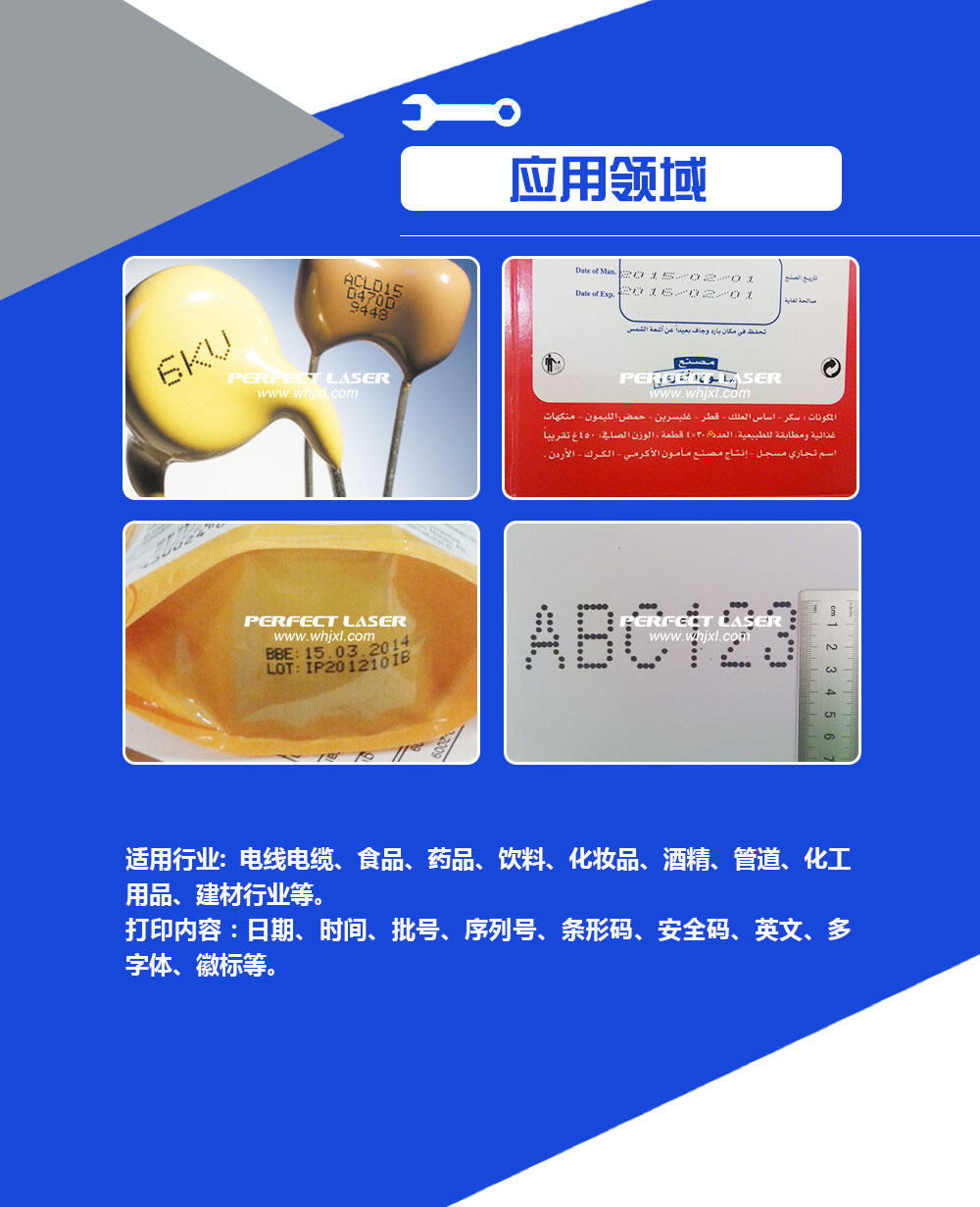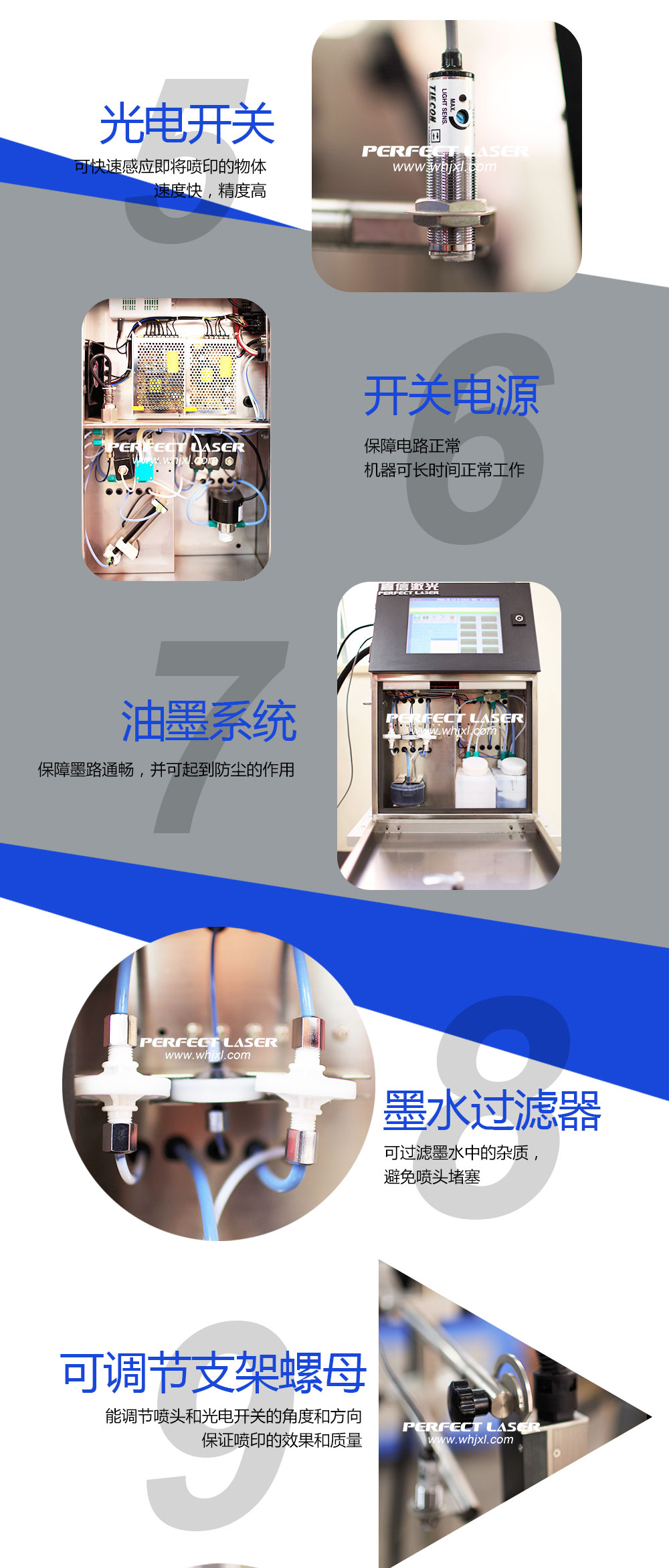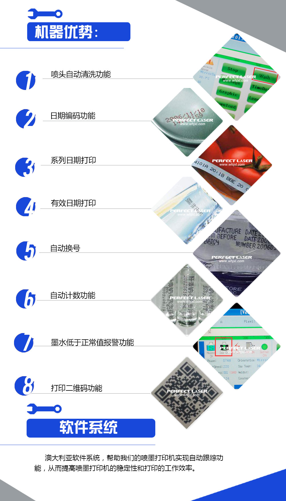 3. 噴印范圍廣泛:能與任何生產(chǎn)線匹配。可在塑料、玻璃、紙張、木材、橡膠、金屬等多種材料、不同形體的表面噴印商標(biāo),出廠日期、說(shuō)明、批號(hào)等。