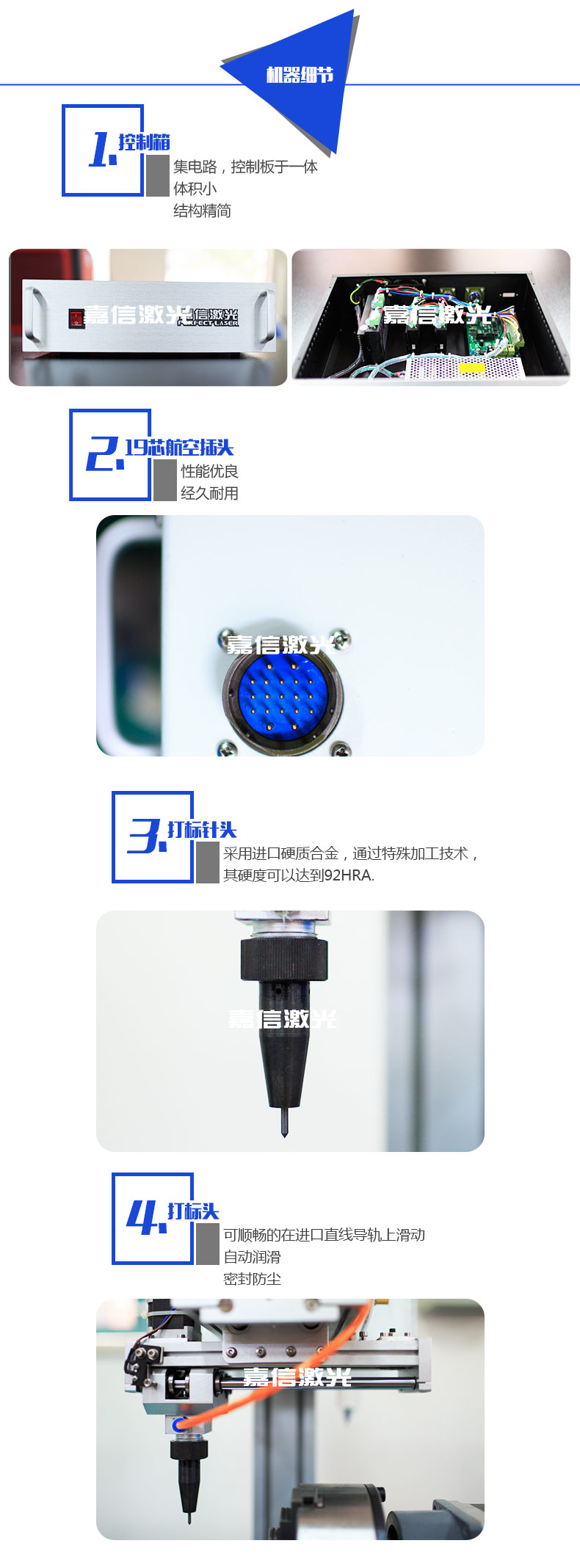 3. 旋轉(zhuǎn)氣動(dòng)打標(biāo)機(jī)采用線性導(dǎo)軌,自潤滑,自防塵密封能夠確保長時(shí)間工作后,精度如初;