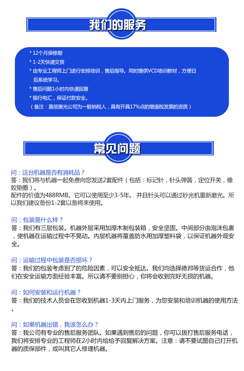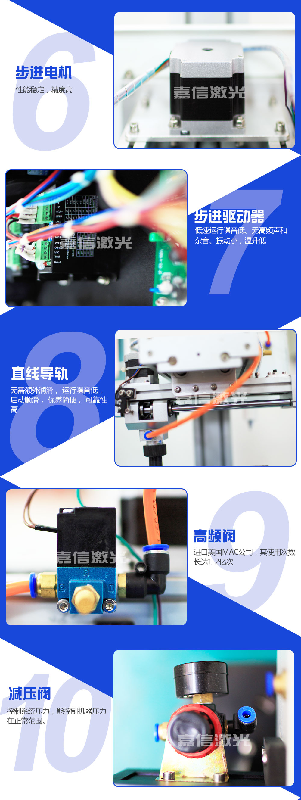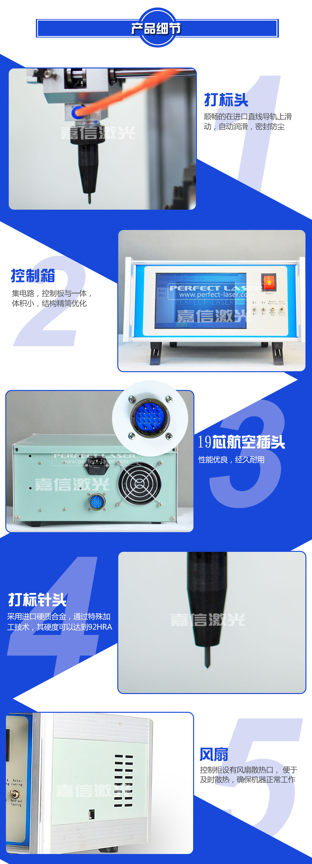 嘉信激光設計生產的旋轉氣動打標機技術成熟,運行穩定。在世界各地,每天都有無數臺嘉信激光的旋轉氣動打標機正安全、良好地運行著,它們廣泛應用于鋼鐵冶金、有色金屬、汽車及零部件、航天航空、軍工電子、精密儀器儀表、機械制造、模具、五金工具、集成電路﹑半導體制造、太陽能、教育、通訊與測量、包裝、鞋材皮革、 塑料橡膠、珠寶首飾、工藝禮品等各個行業,為世界各地用戶提供者優良的品質和服務。