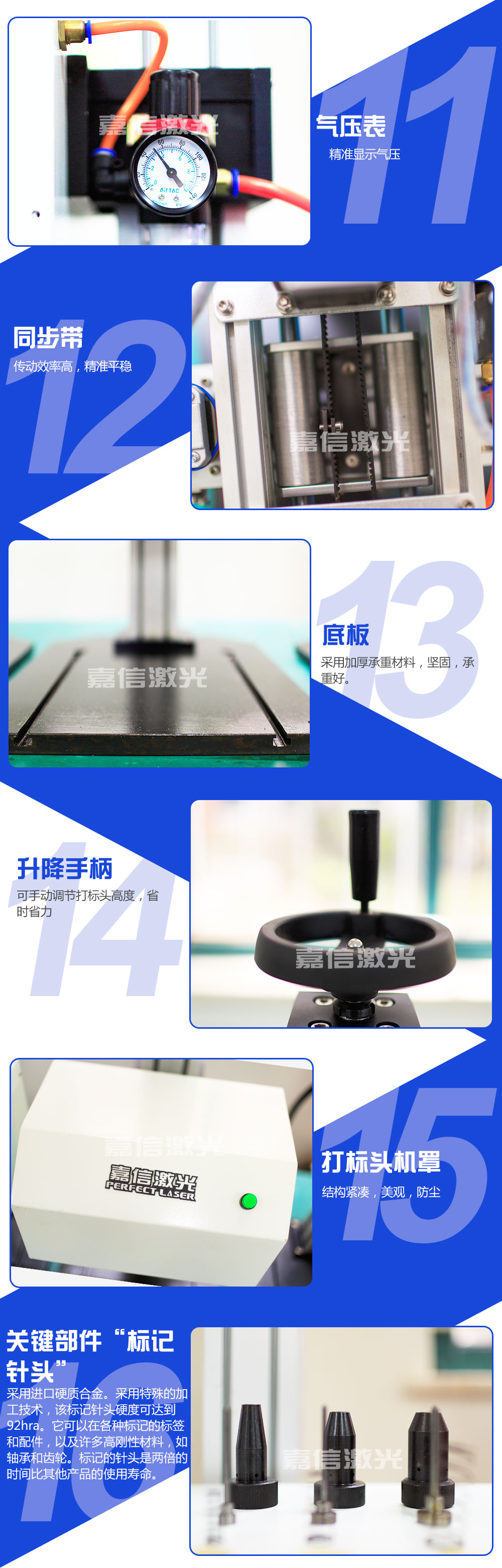 1. 旋轉氣動打標機標記的字符大小、間距在幅面內可任意調節;