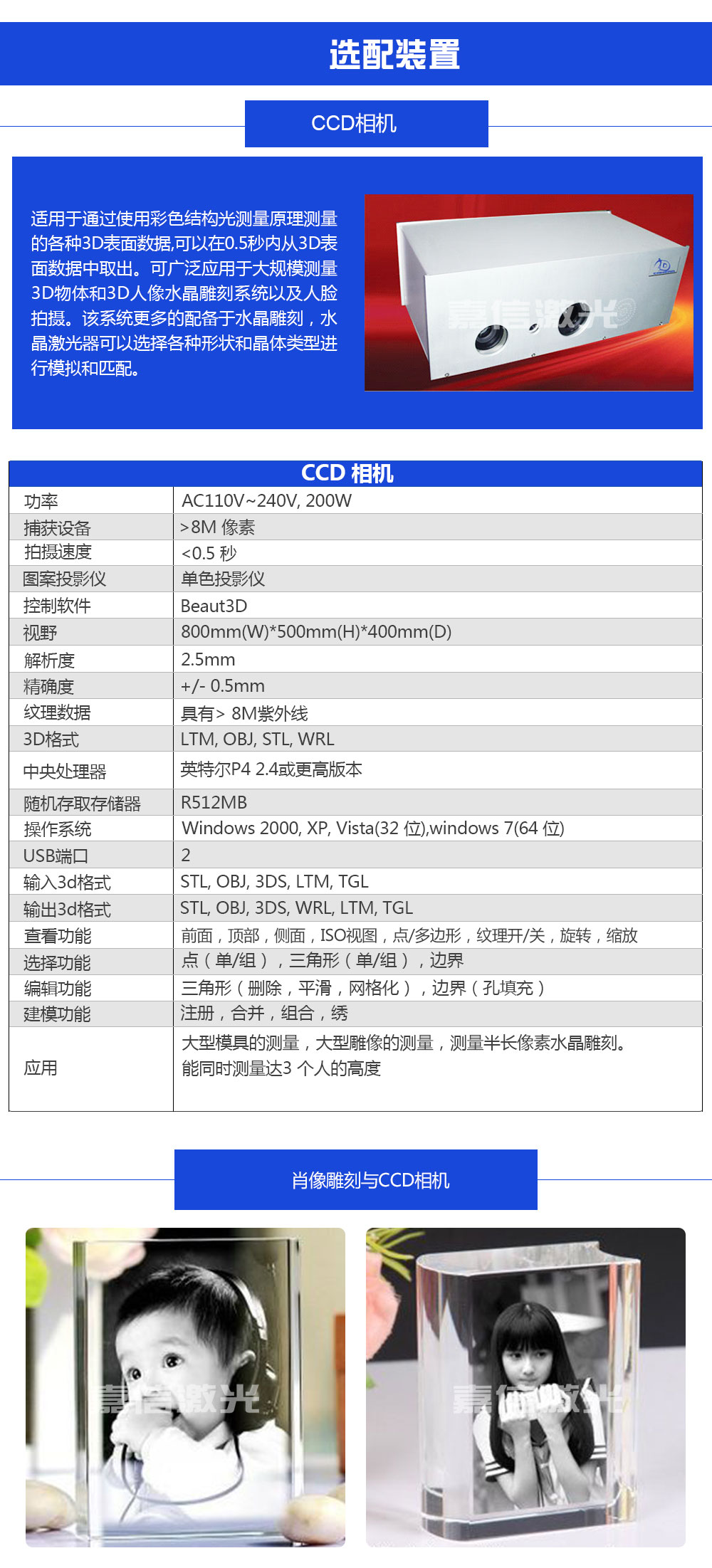 1.適合材料:水晶、玻璃、亞克力等內(nèi)雕和金屬表面雕刻