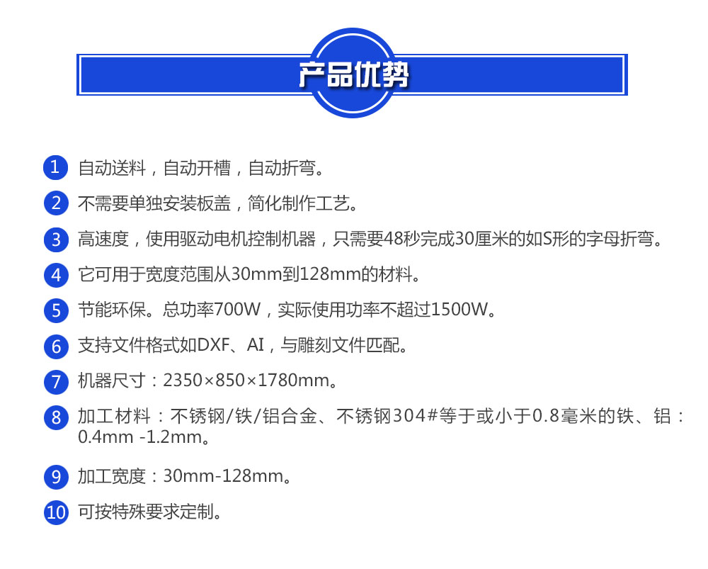 3)操作便捷:該包邊字折彎機為全自動設(shè)備,自動上料,自動開槽,自動折彎;