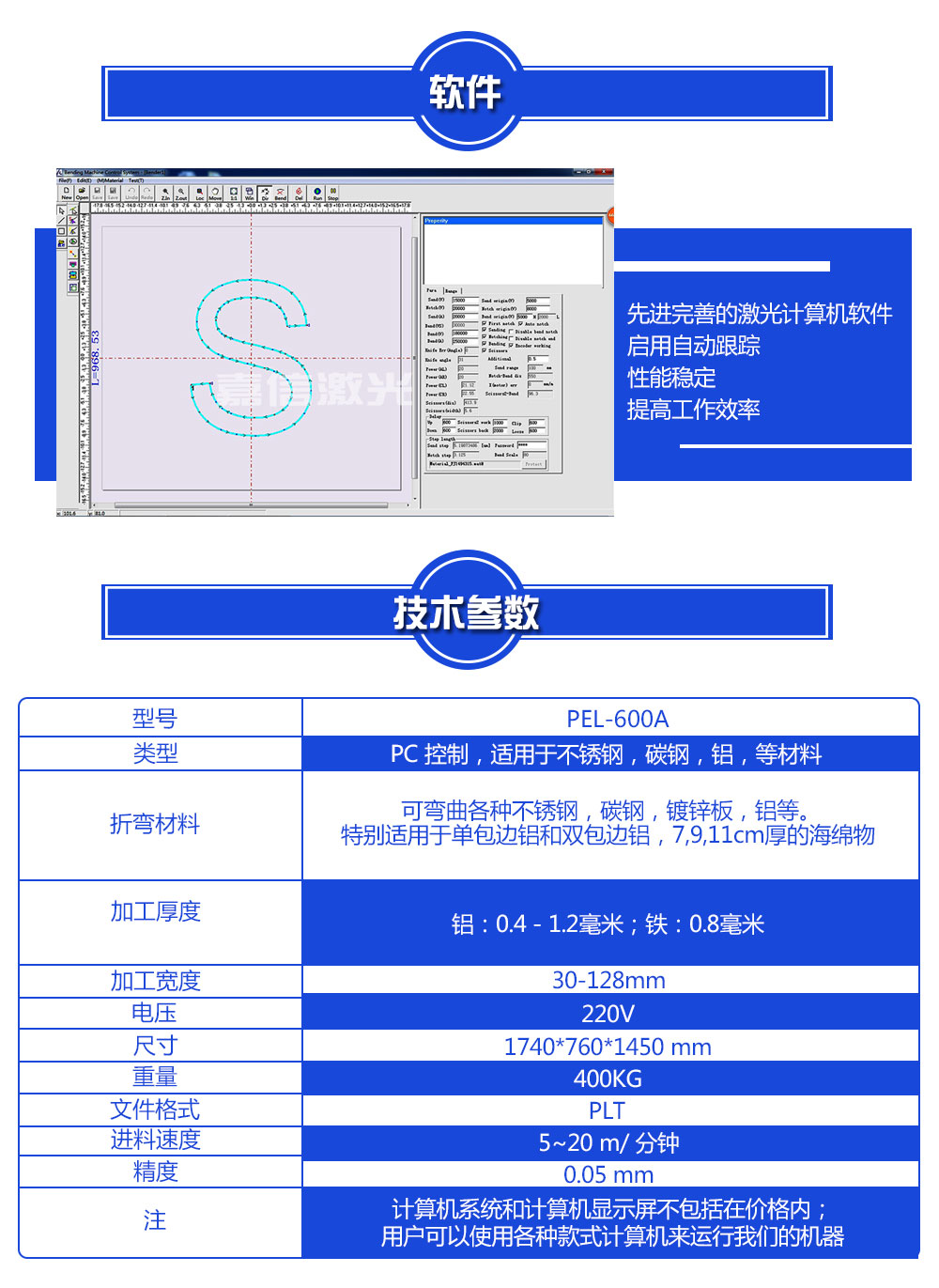 PEL-600A型全自動包邊字折彎機基于武漢嘉信激光有限公司PEL-600成熟平臺制造生產(chǎn),設(shè)備結(jié)構(gòu)精密,經(jīng)濟適用,是各種鋁型材料(彩鋁平板、單包邊、雙包邊卷邊條等)加工的優(yōu)先選擇。
